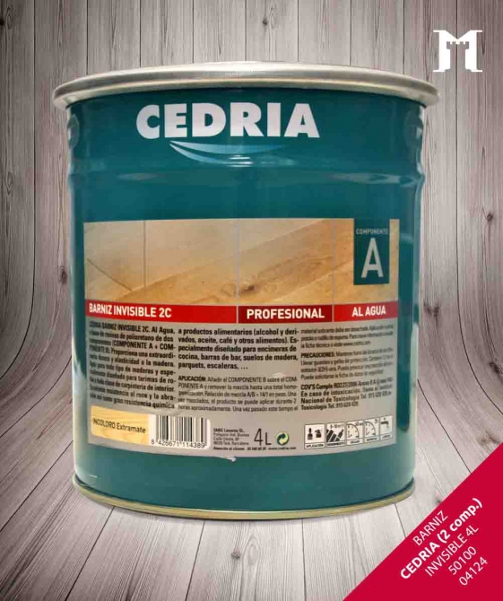 Barniz al agua incoloro de dos componentes formulado con poliuretano de elevado grado de reticulación.