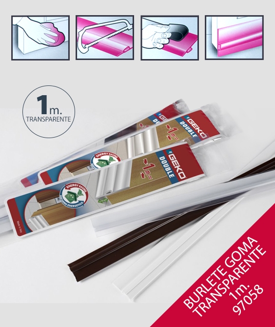 BURLETE PARA PUERTAS ADHESIVO DE GOMA TRANSPARENTE 1M