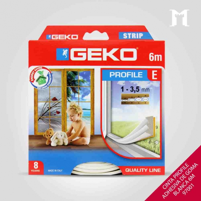 BURLETE PERFIL E DE GOMA ADHESIVO BLANCO 6M