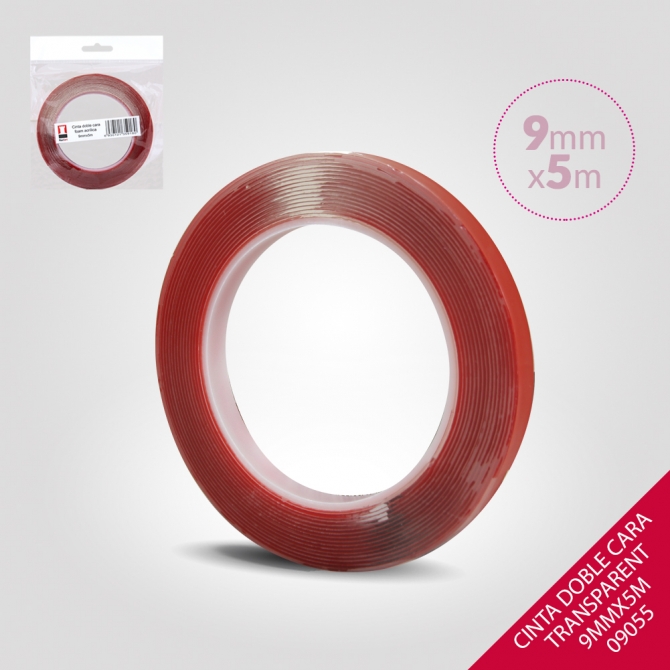 CINTA DOBLE CARA TRANSPARENTE 9MMX5M