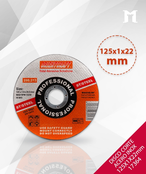 DISCO CORTE ACERO INOX.125X1X22MM.