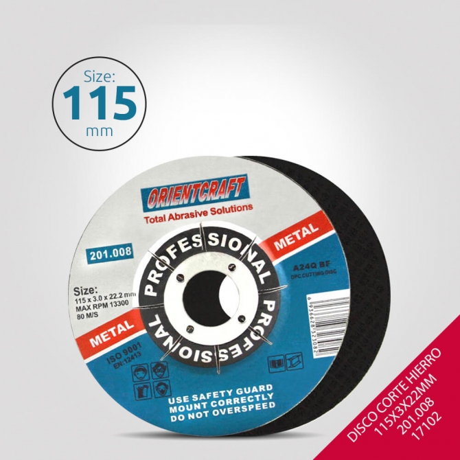 DISCO CORTE HIERRO 115X3X22MM 201.008