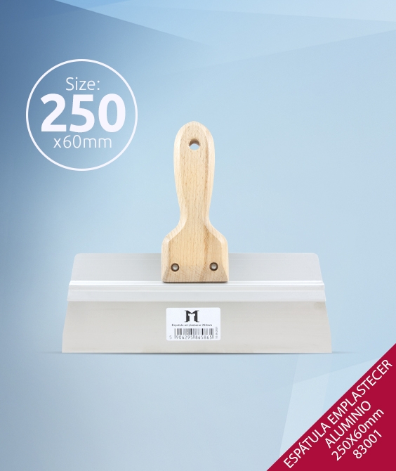 Herramienta utilizada en construcción y acabados, especialmente para enlucir, aplicar masilla o alisar yeso y cemento. Mango madera y cuerpo de aluminiio.