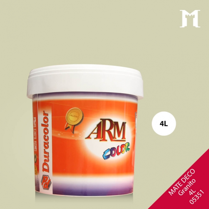 Pintura acrílica al agua de acabado mate con buena lavabilidad, especialmente indicada para el pintado de interiores. Se utiliza como base para la obtención de colores del sistema tintométrico ARM-COLOR, con el que se obtiene un importante abanico de colores, para ello se suministra con un nivel de llenado del 97%.