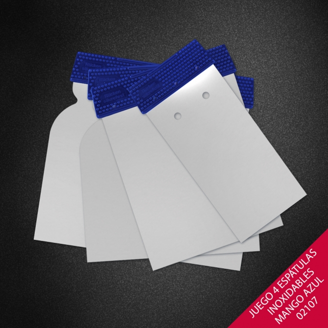JUEGO 4 ESPÁTULAS INOXIDABLES MANGO AZUL