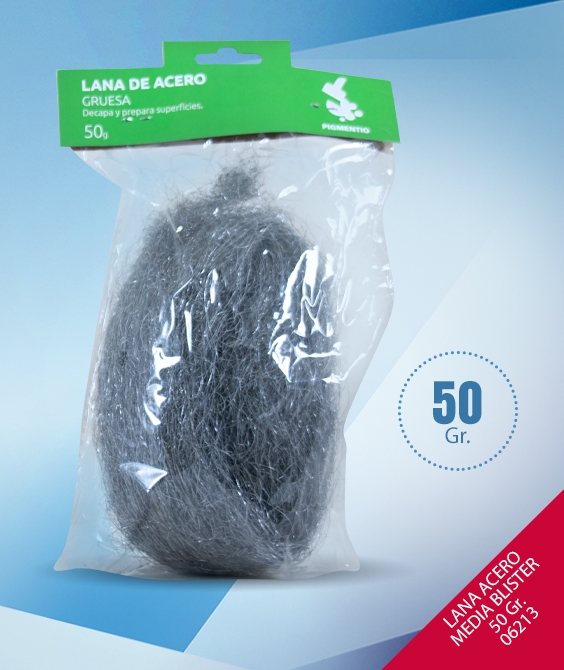 Material abrasivo compuesto por finas hebras de acero entrelazadas que forman una estructura similar a la lana, utilizada principalmente para limpiar, pulir y lijar diversas superficies como madera, metales y suelos, gracias a su variada gama de grosores que determinan su poder de abrasión.
