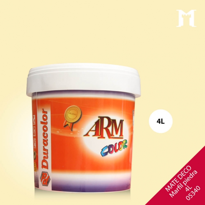 Pintura acrílica al agua de acabado mate con buena lavabilidad, especialmente indicada para el pintado de interiores. Se utiliza como base para la obtención de colores del sistema tintométrico ARM-COLOR, con el que se obtiene un importante abanico de colores, para ello se suministra con un nivel de llenado del 97%.