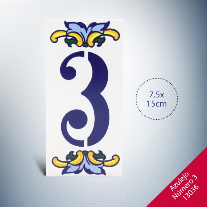 AZULEJO NÚMERO 3 medidas 7.5X15cm