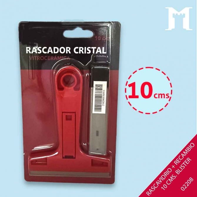 Rascavidrio de plástico de 10 cm. Dispone de 10 cuchillas de recambio.